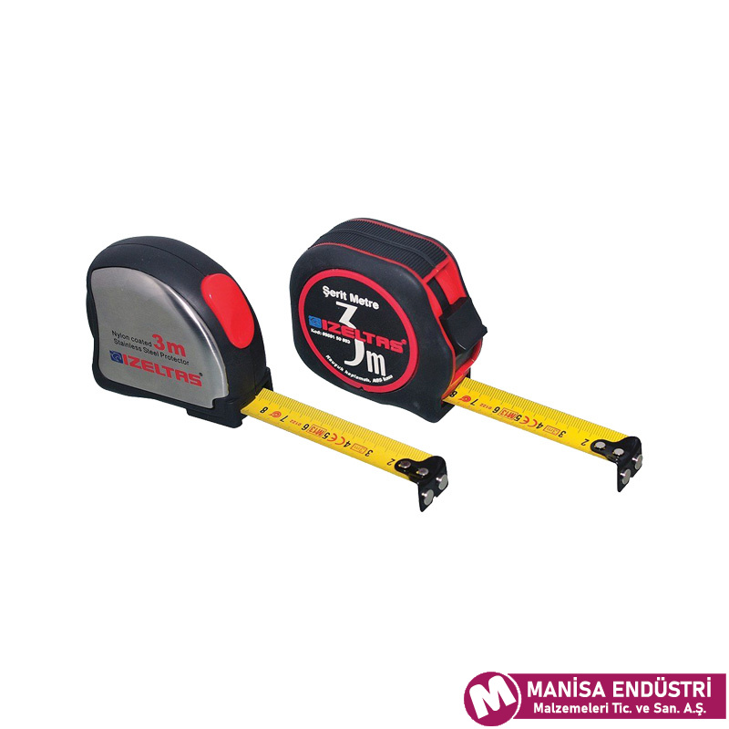 5 metre uzunluk, 19 mm genişlik. Yüksek kaliteli çelik şerit. Darbelere dayanıklı plastik kasa. Otomatik şerit kilitleme mekanizması Net okunabilir rakamlar ve çift yönlü ölçüm imkanı Kemer klipsi ile kolay taşıma.
