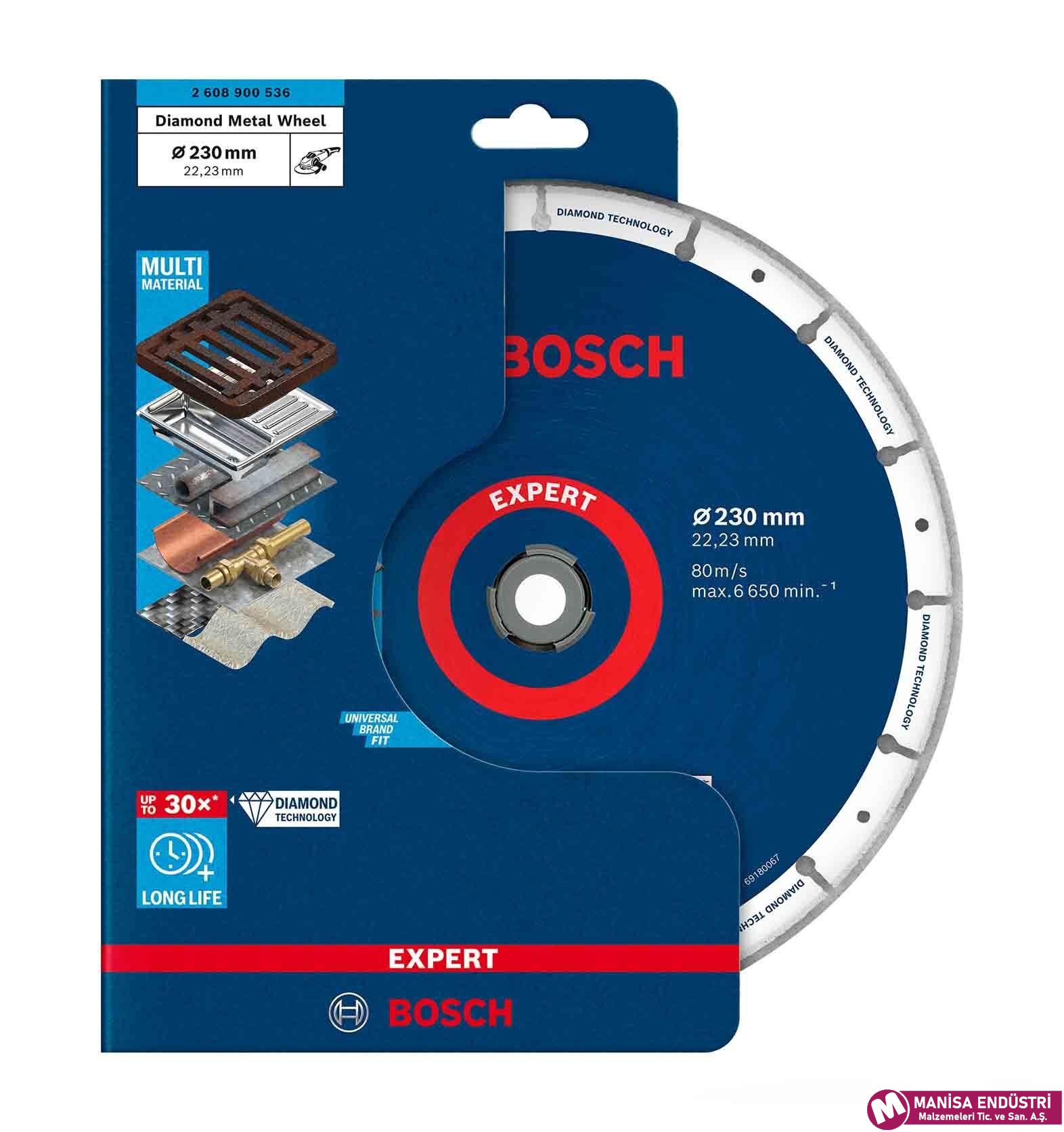 Bosch EXPERT DMW 230 mm Metal Kesme Diski, yüksek hassasiyetli ve uzun ömürlü elmas kaplamasıyla metal kesme işlemlerinde üstün performans sunar.